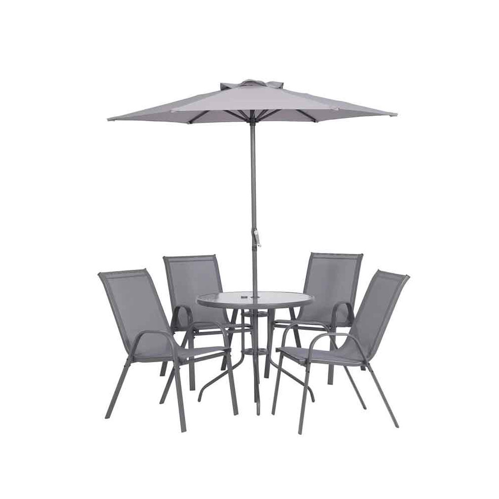 JUEGO DE PATIO NAIROBI 80CM 4 SILLAS SLING Y SOMBRILLA