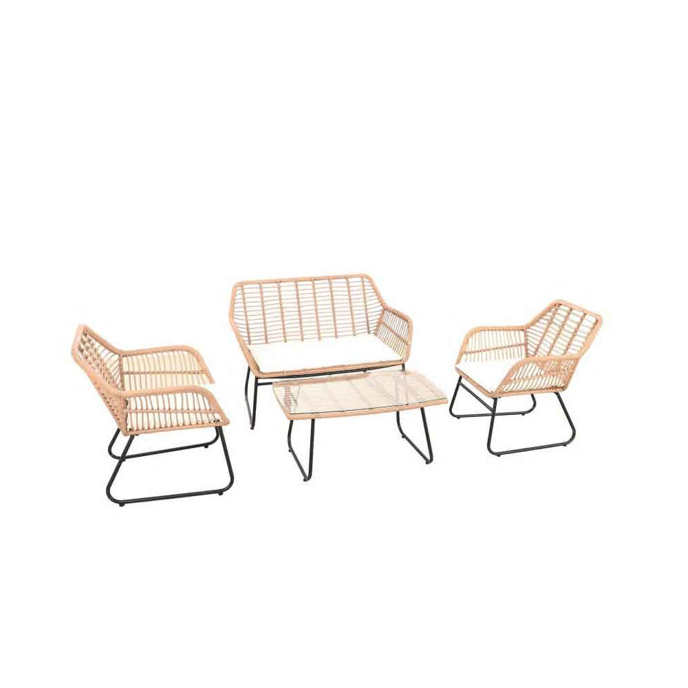 JUEGO DE JARDÍN ACERO Y RATAN ESTILO BAMBU 4 PIEZAS